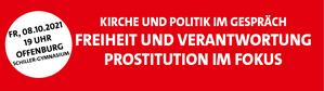 Gemeinsam mit dem Landesbischof der Evangelischen Landeskirche in Baden, Prof. Dr. Jochen Cornelius-Bundschuh, brachten wir als SPD in Baden-Württemberg Kirche und Politik ins Gespräch. Am Freitag, 08.10.2021, fand eine Podiumsdiskussion über Prostitution und Ethik, über das Nordische Modell und die verschiedenen Ansätze, Blickwinkel und Probleme in Offenburg. Mit dabei waren unser Landesvorsitzender Andreas Stoch, die Psychotraumatologin Dr. Brigitte Schmid-Hagenmeyer, unsere stellv. Landesvorsitzende Dr. Dorothea Kliche-Behnke, der religionspolitische Sprecher der SPD-Landtagsfraktion Daniel Born und Matthias Katsch, der SPD-Kreisvorsitzende vor Ort.